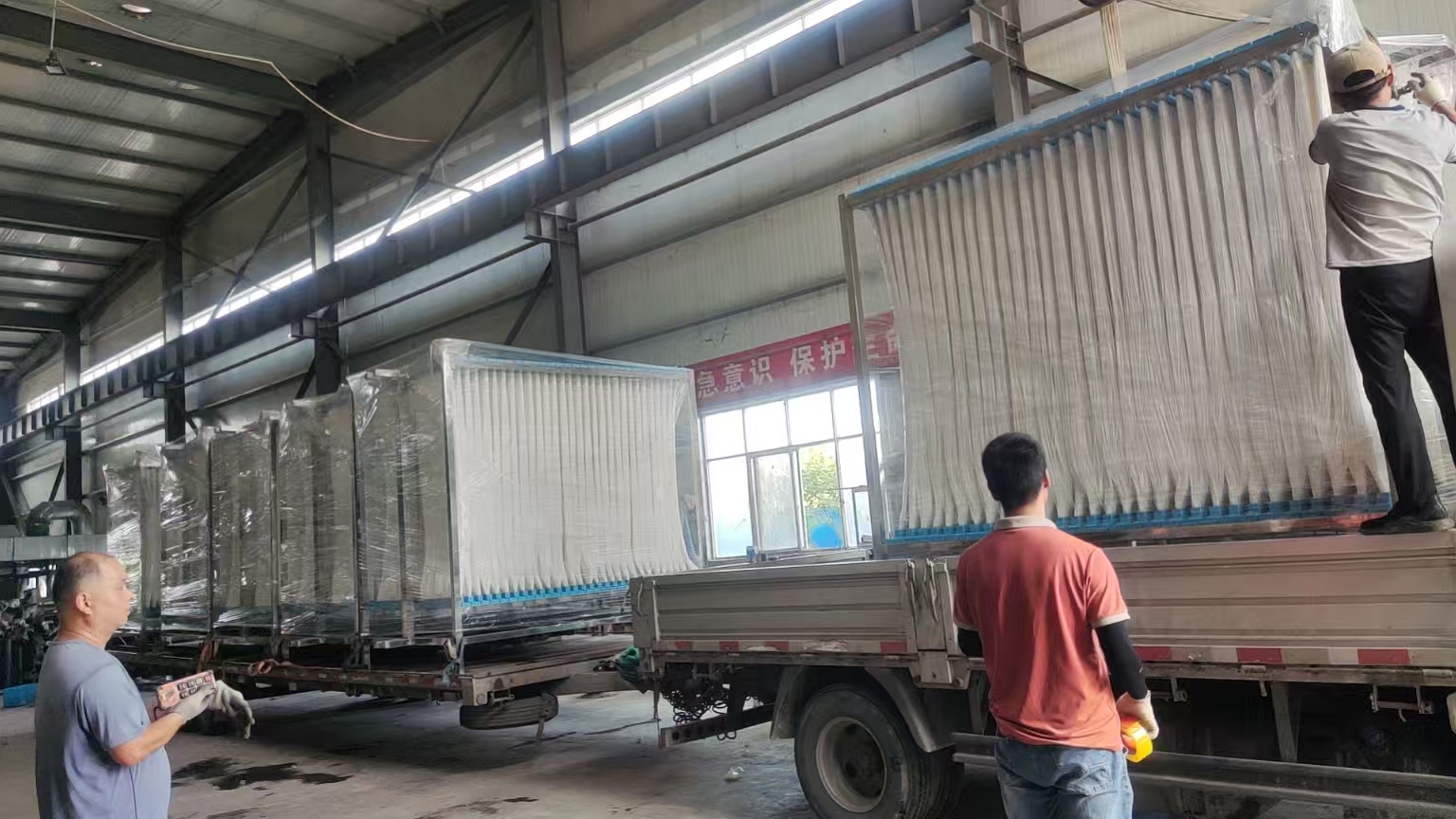 2025年7月28日下午,河南迈纳MBR帘式膜超滤膜组件发往烟台污水处理厂项目现场