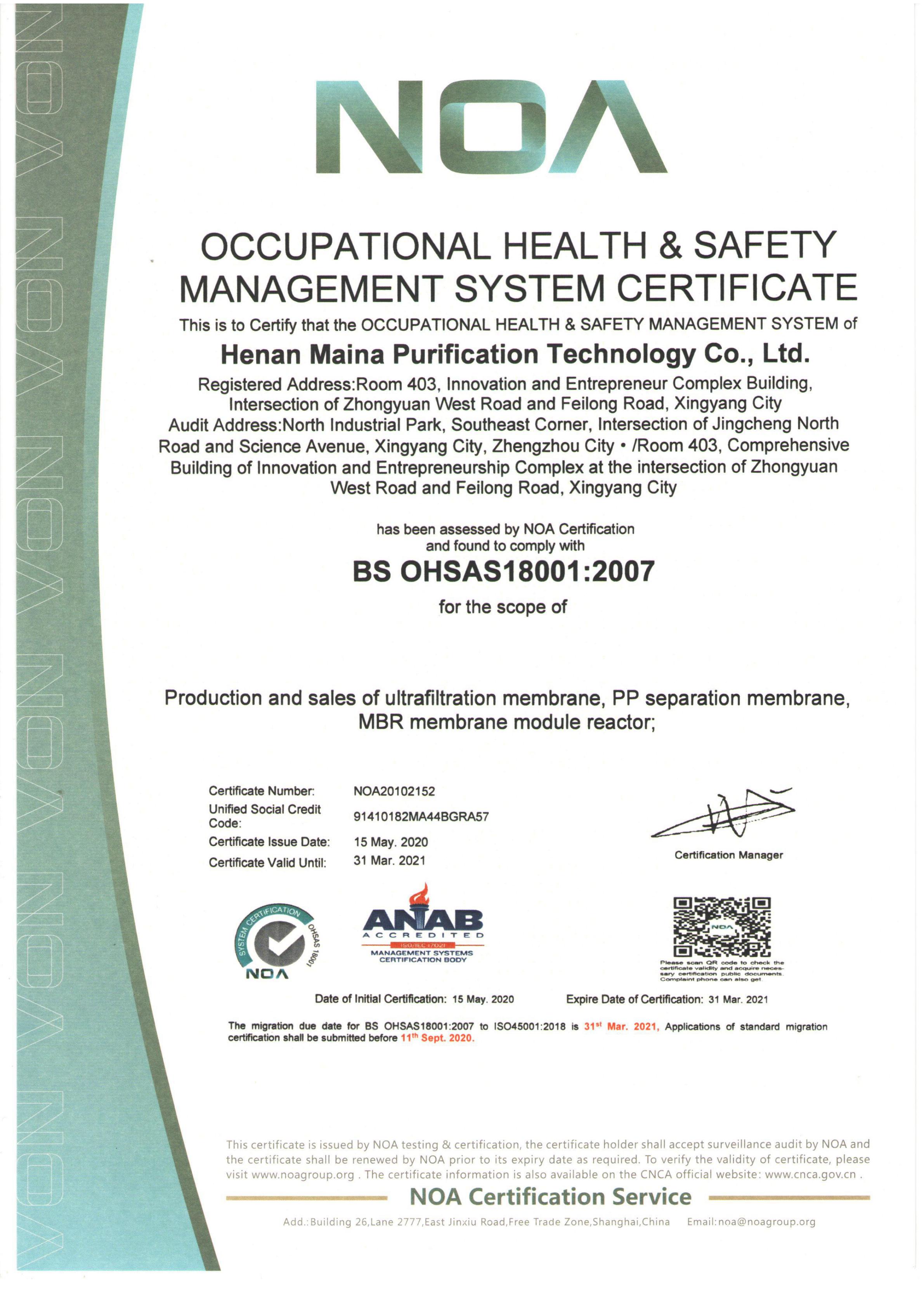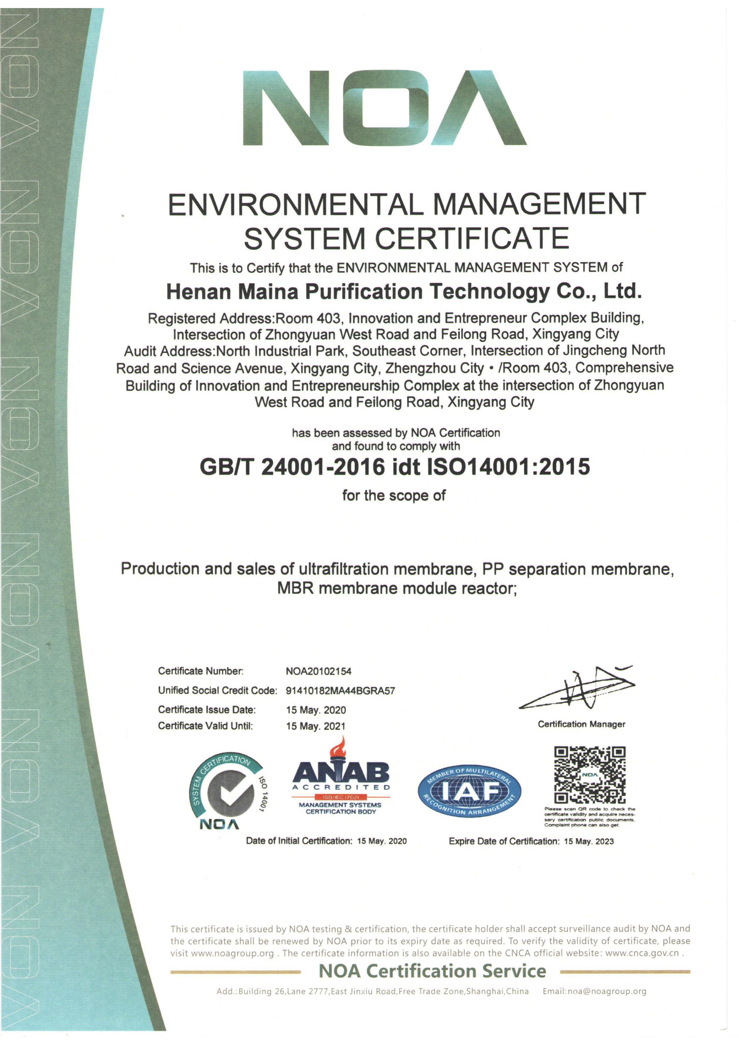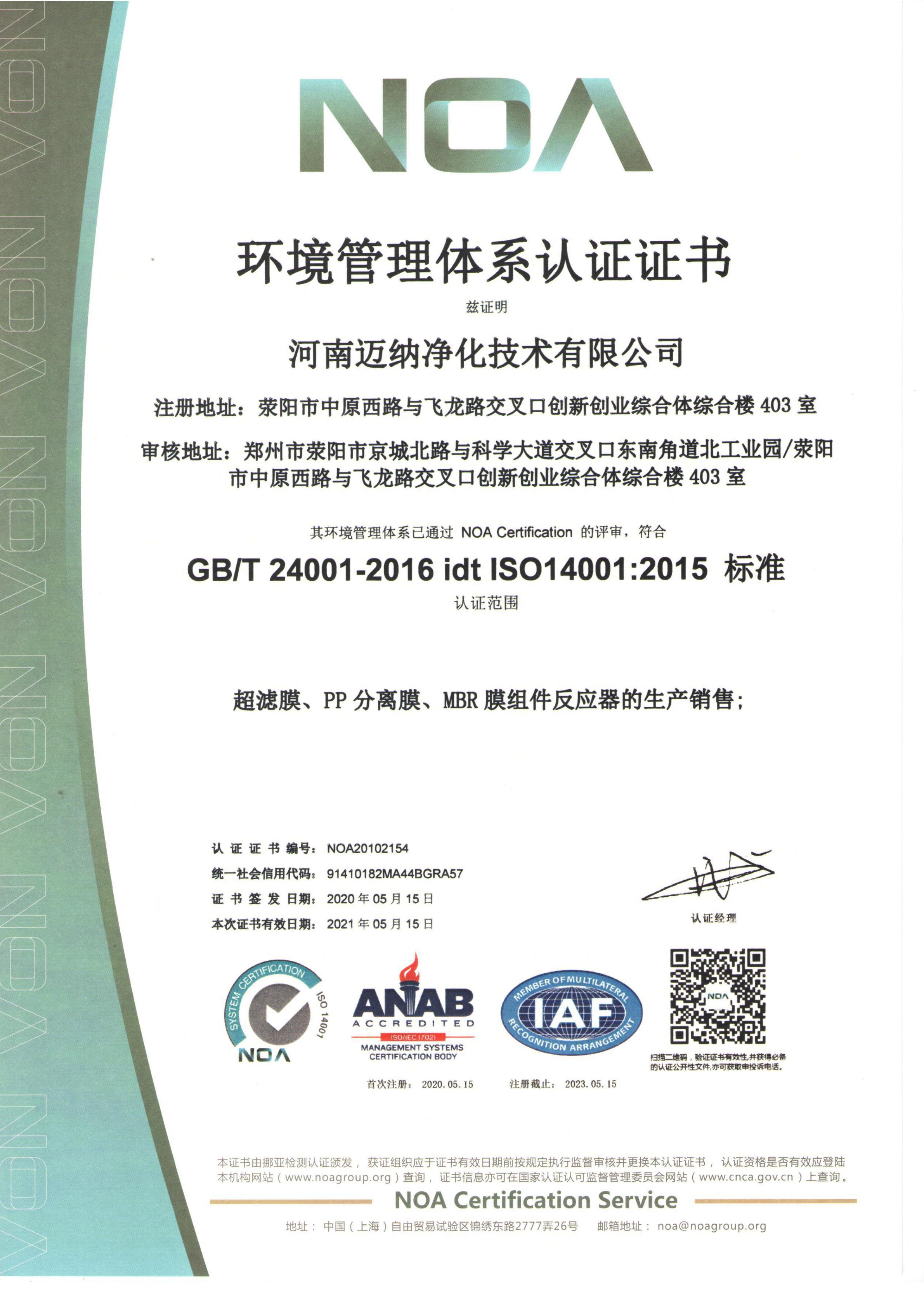 2019年,公司申报体系认证,并于2020年认证成功,并下发相关证书